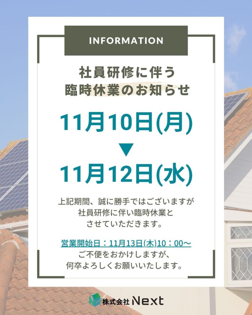 臨時休業中にいただきましたお問合せは11/13以降に対応させていただきます。